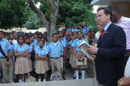 Diputado Víctor (Ito) Bisonó, en su elocución a los estudiantes del Liceo Secundario José Joaquín Pérez.